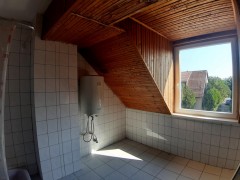 A lépcsőfeljáróból az emeletre is fel juthatunk ahol, szintén egy tágas fürdőszoba és egy külön nyíló wc található.
