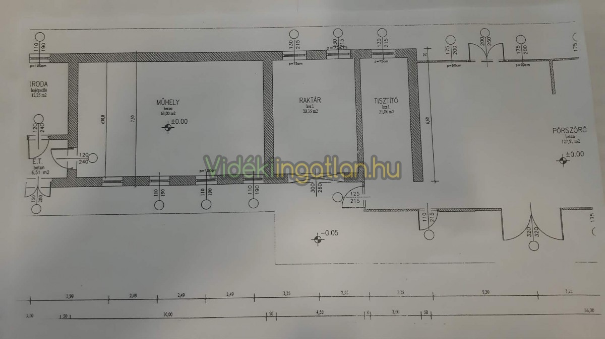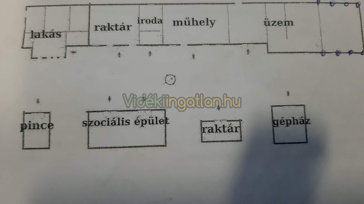 Lakás, Raktár, 13 nm Iroda, 63 nm Műhely, 28 nm + 22 nm + 128 nm Üzem.